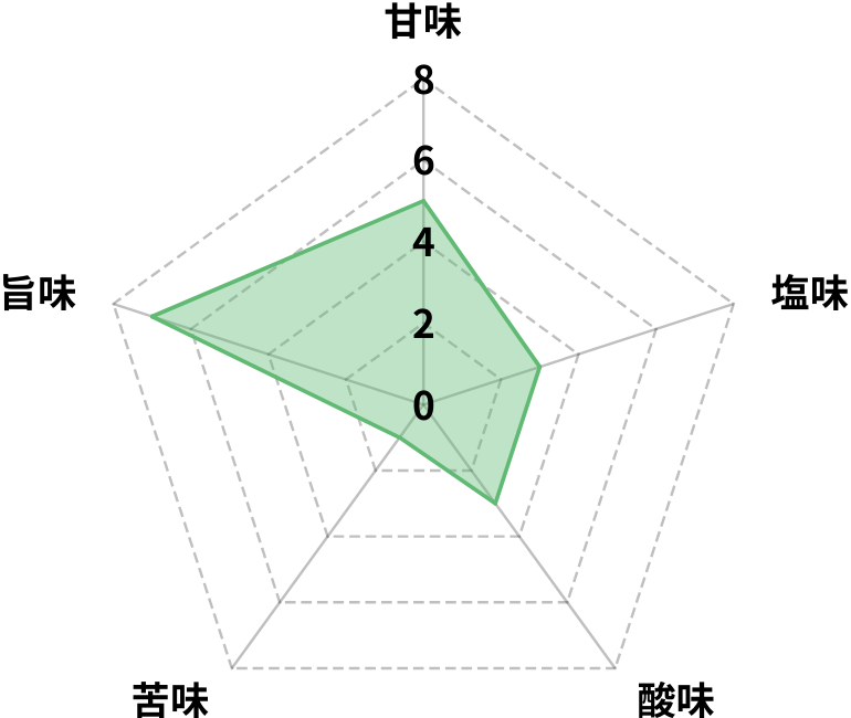 エネルギー31kcal / たんぱく質2.2g / 脂質0.8g / 炭水化物3.7g / 糖質2.4g / 食物繊維1.3g / 食塩相当量0.1g