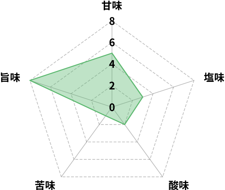 エネルギー10kcal / たんぱく質0.3g / 脂質0.0g / 炭水化物2.3g / 糖質1.8g / 食物繊維0.5g /食塩相当量0.4g